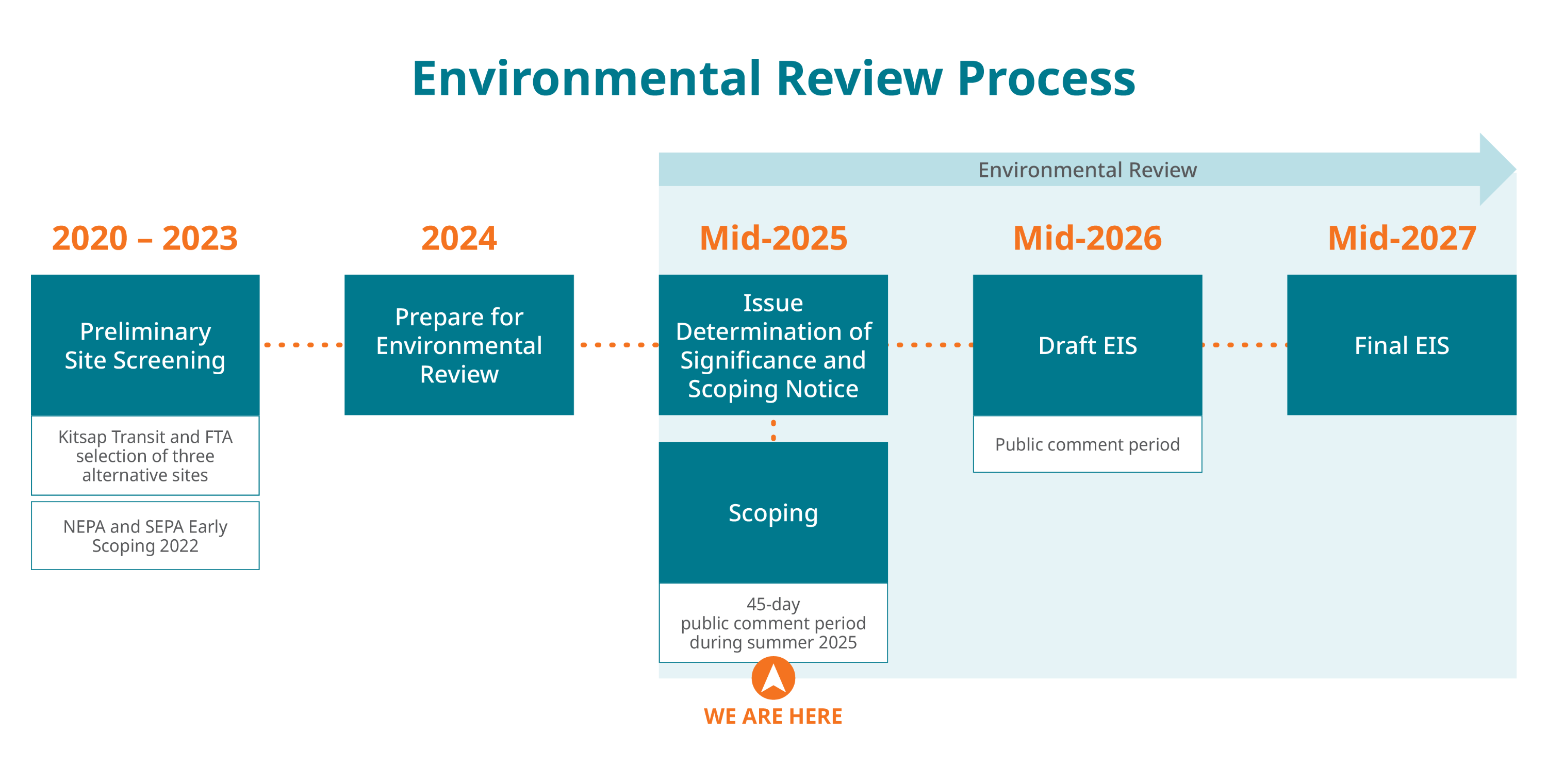 Kitsap Transit will review and respond to comments received on the Draft EIS, and these will be included in the Final EIS. The Final EIS is anticipated to be completed in mid-2027. During and after this phase, Kitsap Transit will continue working closely with project partners.