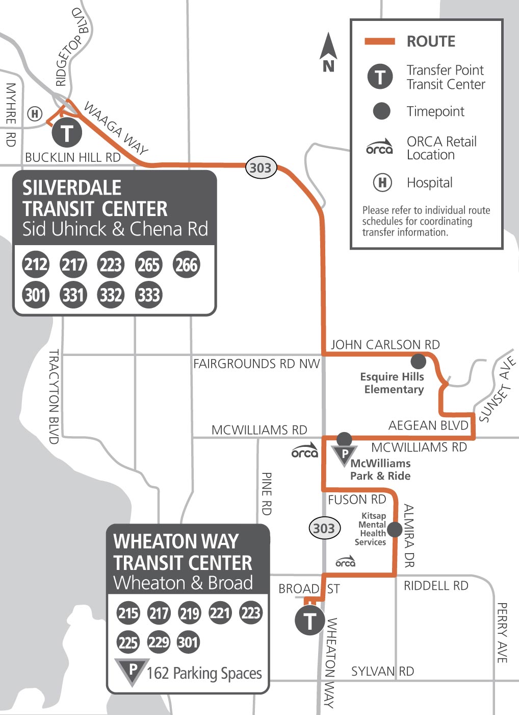 Service TimesWeekdays and Saturday Areas ServedWheaton Way Transit Center, McWilliams Park & Ride, Kariotis, Esquire Hills Elementary, Ridgetop Boulevard, Kitsap Mall Boulevard, Silverdale Transit Center StopsThis bus will stop at marked stops. Schedule Effective March 16, 2025 |